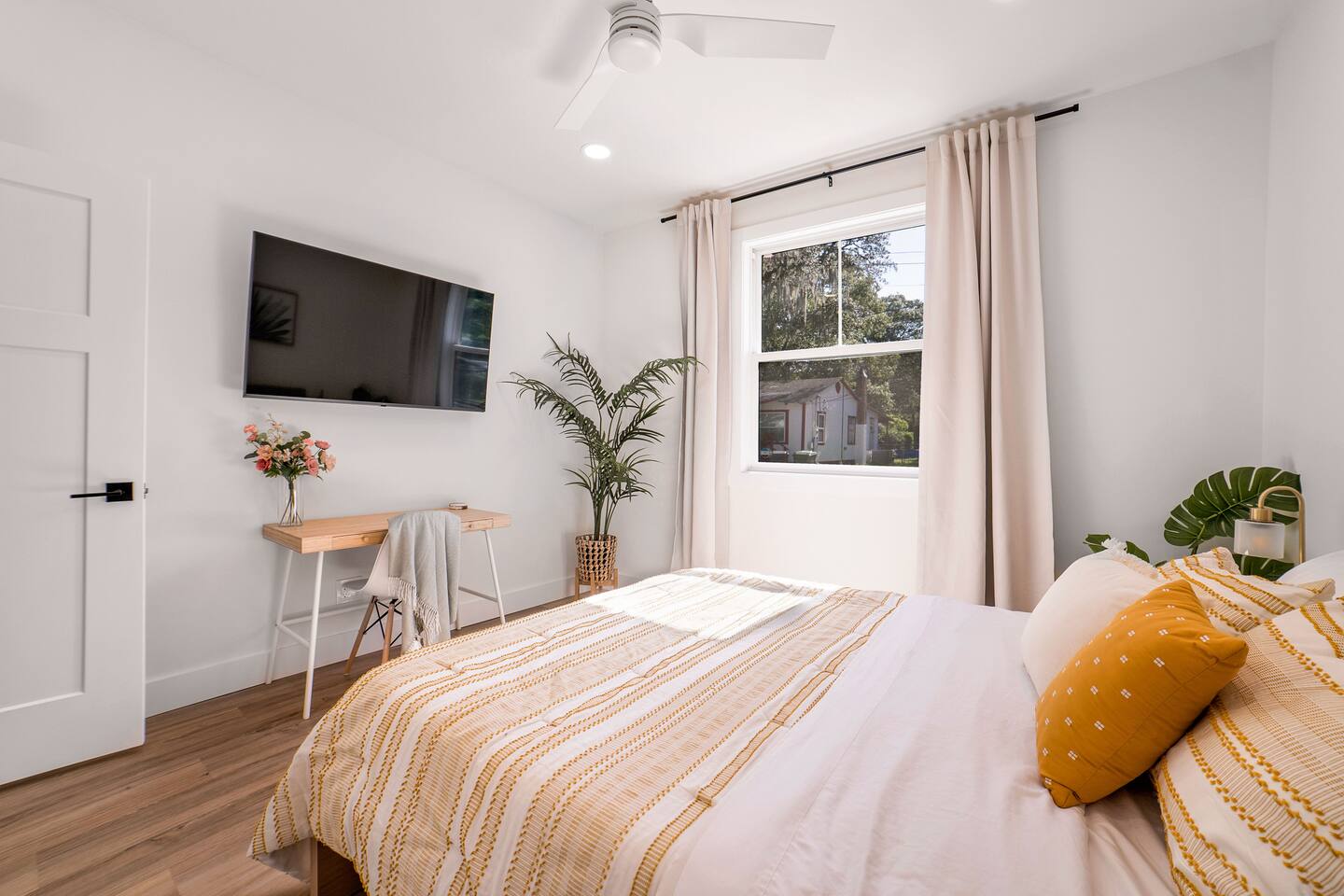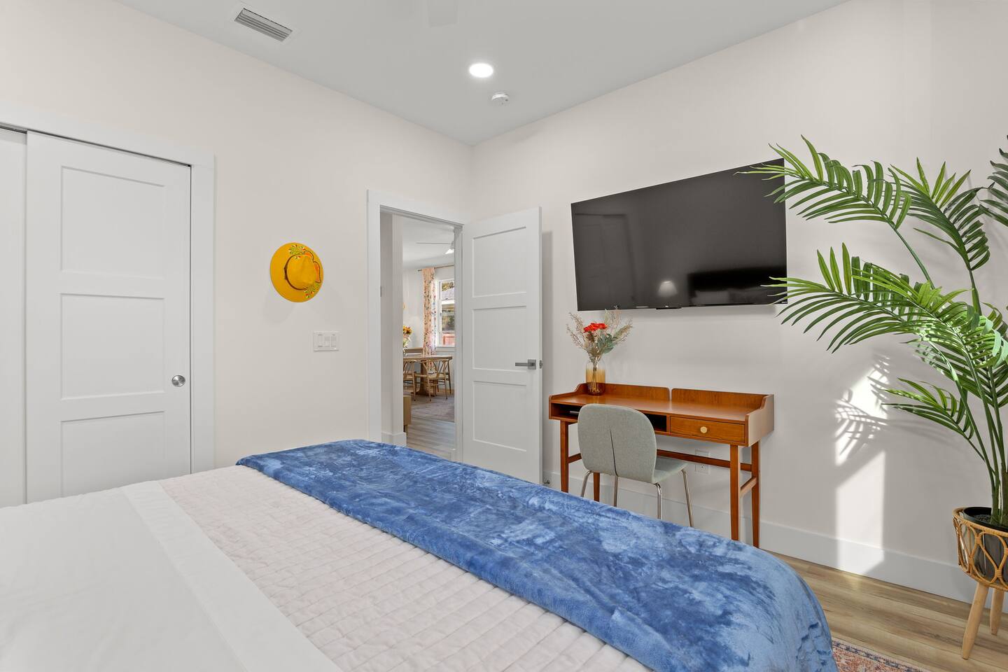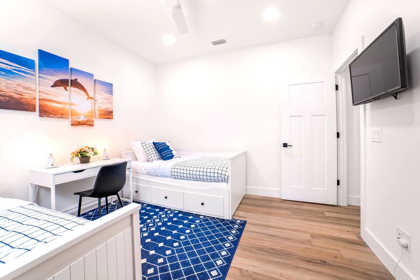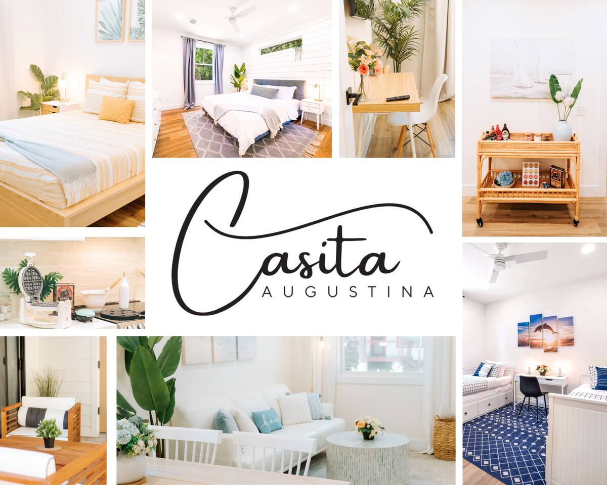 ✦ Why our guests love these homes ✦ Each House Has: • Primary King Suite: Your private retreat with a king bed, en-suite bathroom, walk-in closet, smart TV, and direct access to the backyard patio. • Queen Bedroom: Cozy and functional, featuring a queen bed, workspace, smart TV, and shared bathroom. • Twin Room: Perfect for kids or extra guests, this room features twin beds, plus a smart TV. **One house features twin trundle beds that will pull out to a king bed** • Living Room: A cozy space with a leather couch, high ceilings, and a 65” smart TV for movie nights or streaming your favorites. • Fully Stocked Kitchen: Cook with ease in the modern kitchen, complete with all cookware and a coffee station. • Dining Space: Room for everyone with seating for 6 at the dining table and 4 at the kitchen bar. • Outdoor Bliss: Unwind in the private, fenced backyard with a hammock, swing, and covered patio seating area with a ceiling fan. • Beach Essentials: Chairs, umbrellas, a cooler, and more are provided for your beach adventures. • Extra Amenities: High-speed WiFi, in-home washer/dryer, and professional cleaning before each stay. Check-in is seamless with our keyless smart lock. Your personalized code will be shared prior to arrival for hassle-free entry. Our homes are centrally located, offering easy access to St. Augustine’s historic attractions, family-friendly activities, and gorgeous beaches. Approximate Travel Times: ➤ Historic Downtown (St. George Street) - 5 Minutes ➤ Castillo de San Marcos - 7 Minutes ➤ St. Augustine Beach - 12 Minutes ➤ Anastasia State Park - 10 Minutes ➤ Lightner Museum - 6 Minutes ➤ Alligator Farm Zoological Park - 10 Minutes ➤ Flagler College - 5 Minutes ➤ Vilano Beach - 15 Minutes Whether you’re exploring history, soaking up the sun, or enjoying local dining, you’ll find everything just minutes away from this prime location with: 🏖️ Beach-Ready Perks: Includes chairs, umbrellas, and coolers for your beach days. 🌴 Relaxation Awaits: Private backyard with hammock, swing, and covered patio seating. ⭐ Modern Comfort: Bright, white decor with spacious living areas and top-tier amenities. 📍 Prime Location: Close to St. Augustine’s historic downtown and beaches. Please Note: Florida’s wildlife is part of its charm, but we do share our space with some uninvited guests, including lizards, mosquitoes, and occasional spiders, as well as other residents of Florida’s diverse ecosystem. While we have regular pest control, keeping doors and windows closed when not in use will help minimize their visits. 🦎
