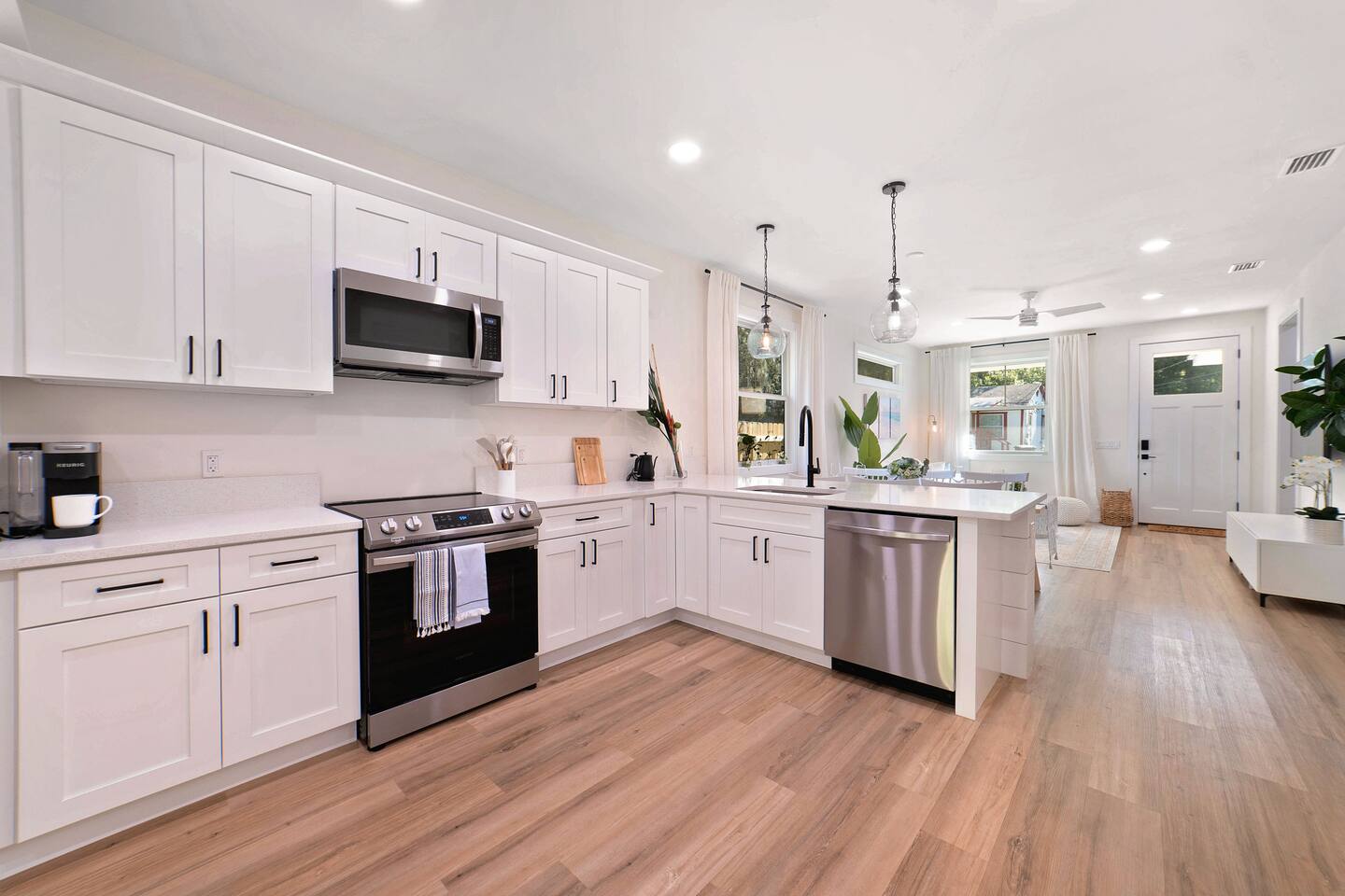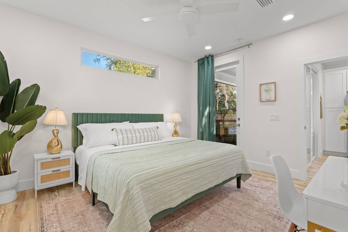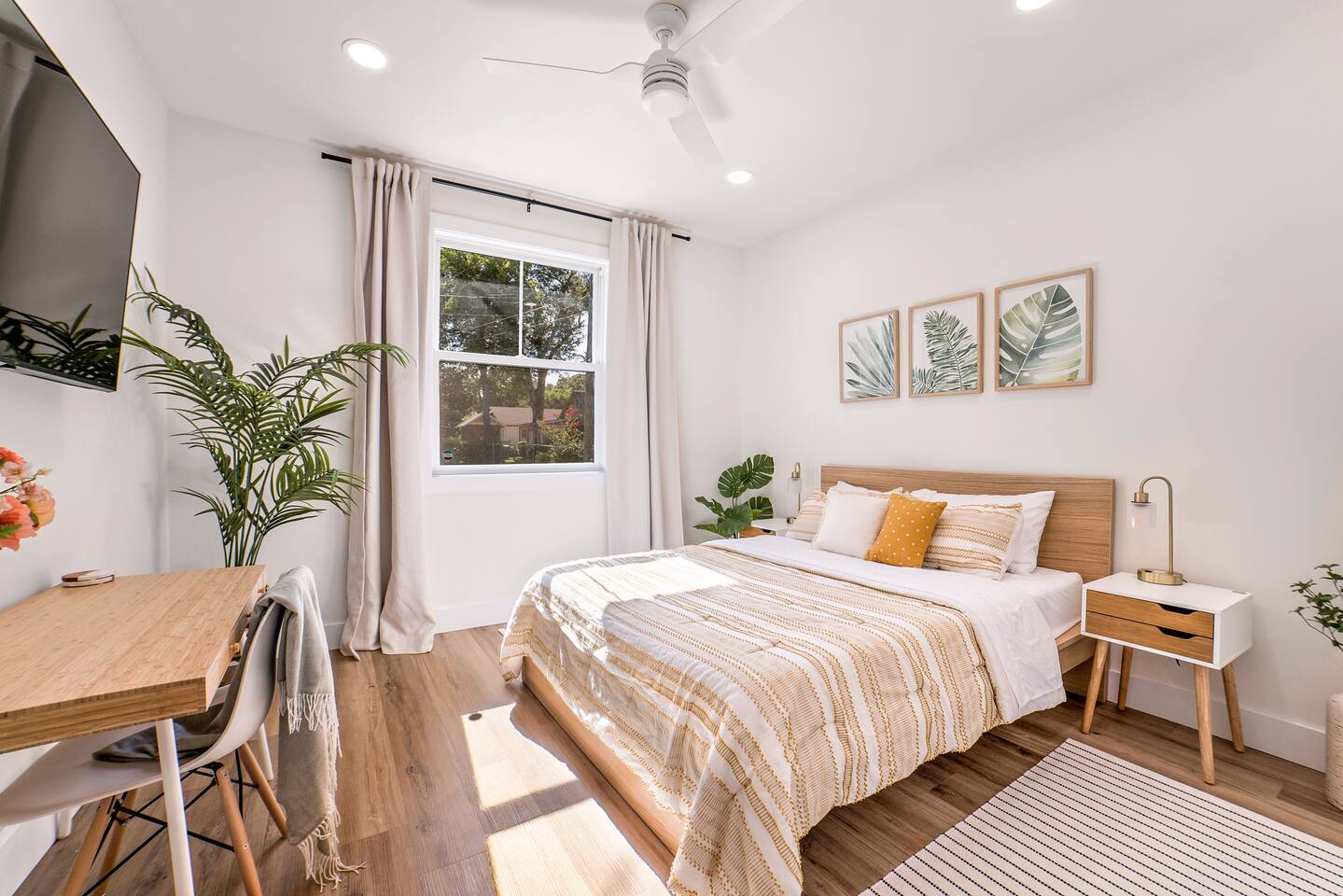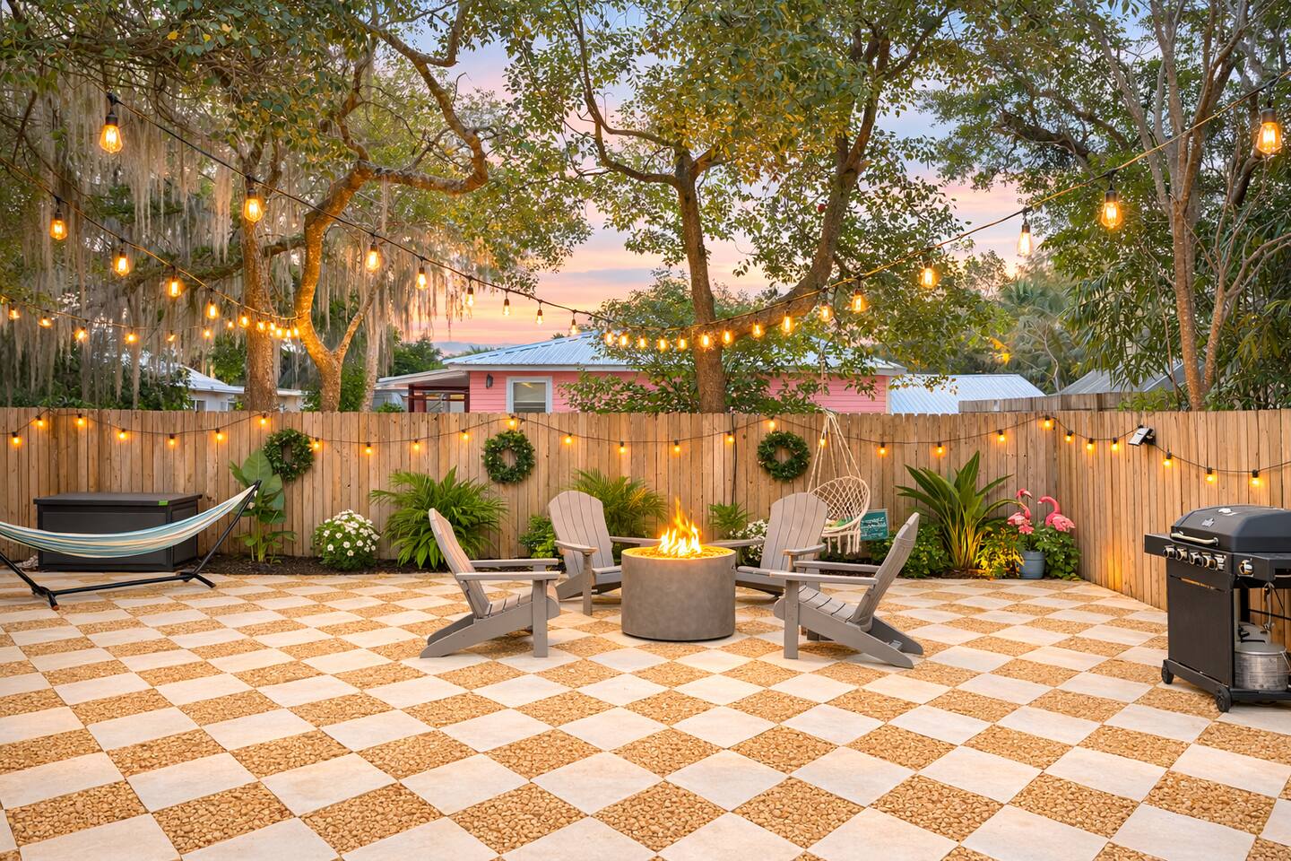 ✦ Why our guests love these homes ✦ Each House Has: • Primary King Suite: Your private retreat with a king bed, en-suite bathroom, walk-in closet, smart TV, and direct access to the backyard patio. • Queen Bedroom: Cozy and functional, featuring a queen bed, workspace, smart TV, and shared bathroom. • Twin Room: Perfect for kids or extra guests, this room features twin beds, plus a smart TV. **One house features twin trundle beds that will pull out to a king bed** • Living Room: A cozy space with a leather couch, high ceilings, and a 65” smart TV for movie nights or streaming your favorites. • Fully Stocked Kitchen: Cook with ease in the modern kitchen, complete with all cookware and a coffee station. • Dining Space: Room for everyone with seating for 6 at the dining table and 4 at the kitchen bar. • Outdoor Bliss: Unwind in the private, fenced backyard with a hammock, swing, and covered patio seating area with a ceiling fan. • Beach Essentials: Chairs, umbrellas, a cooler, and more are provided for your beach adventures. • Extra Amenities: High-speed WiFi, in-home washer/dryer, and professional cleaning before each stay. Check-in is seamless with our keyless smart lock. Your personalized code will be shared prior to arrival for hassle-free entry. Our homes are centrally located, offering easy access to St. Augustine’s historic attractions, family-friendly activities, and gorgeous beaches. Approximate Travel Times: ➤ Historic Downtown (St. George Street) - 5 Minutes ➤ Castillo de San Marcos - 7 Minutes ➤ St. Augustine Beach - 12 Minutes ➤ Anastasia State Park - 10 Minutes ➤ Lightner Museum - 6 Minutes ➤ Alligator Farm Zoological Park - 10 Minutes ➤ Flagler College - 5 Minutes ➤ Vilano Beach - 15 Minutes Whether you’re exploring history, soaking up the sun, or enjoying local dining, you’ll find everything just minutes away from this prime location with: 🏖️ Beach-Ready Perks: Includes chairs, umbrellas, and coolers for your beach days. 🌴 Relaxation Awaits: Private backyard with hammock, swing, and covered patio seating. ⭐ Modern Comfort: Bright, white decor with spacious living areas and top-tier amenities. 📍 Prime Location: Close to St. Augustine’s historic downtown and beaches. Please Note: Florida’s wildlife is part of its charm, but we do share our space with some uninvited guests, including lizards, mosquitoes, and occasional spiders, as well as other residents of Florida’s diverse ecosystem. While we have regular pest control, keeping doors and windows closed when not in use will help minimize their visits. 🦎